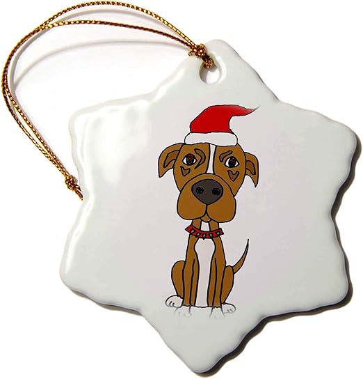 Amazon 3drose All Smiles Art クリスマス キュートで面白い茶色のピットブルパピー犬のクリスマスカートゥーン オーナメント 3 Inch Snowflake Porcelain Ornament Orn 291117 1 インテリア オンライン通販